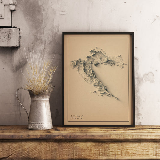Croatia Shaded Relief Map | Minimalist Topographic Wall Art
