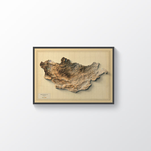 Mongolia Shaded Relief Map | Vintage Elevation Map Based on 1962 Original