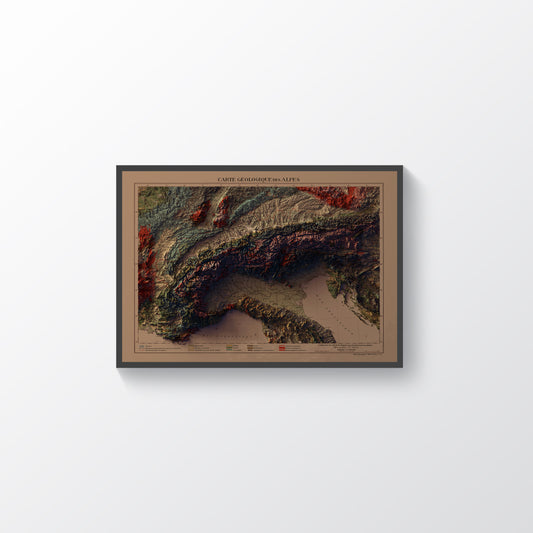 Alps Shaded Relief Map | Vintage Elevation Map Based on 1921 Original