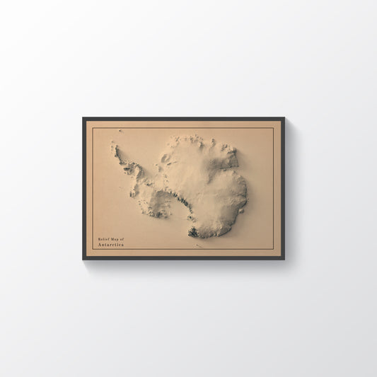Antarctica Shaded Relief Map | Minimalist Topographic Wall Decor