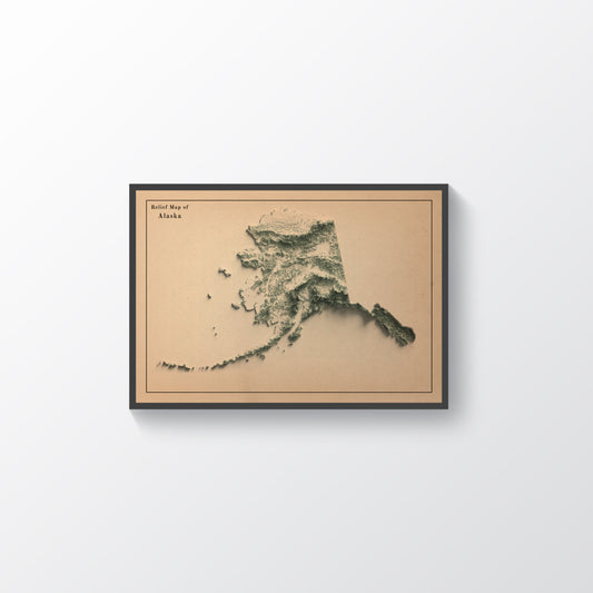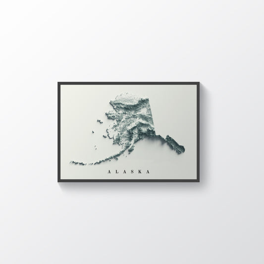 Alaska (USA) Shaded Relief Map | Minimalist Topographic Wall Decor