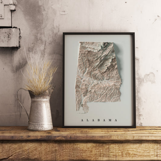 Alabama (USA) Shaded Relief Map | Minimalist Topographic Wall Decor