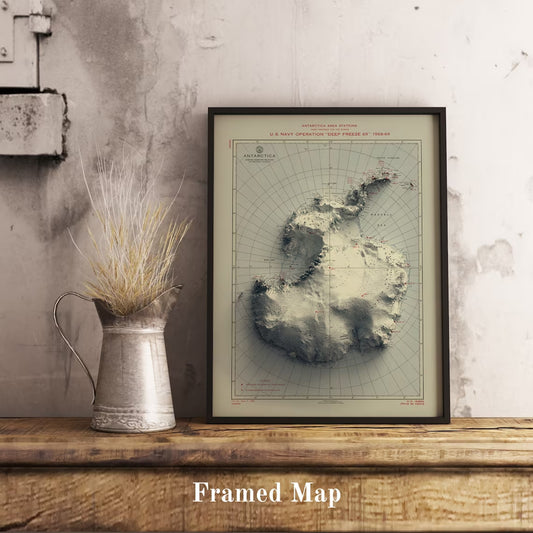Antarctica Shaded Relief Map | Vintage Elevation Map Based on 1968 Original