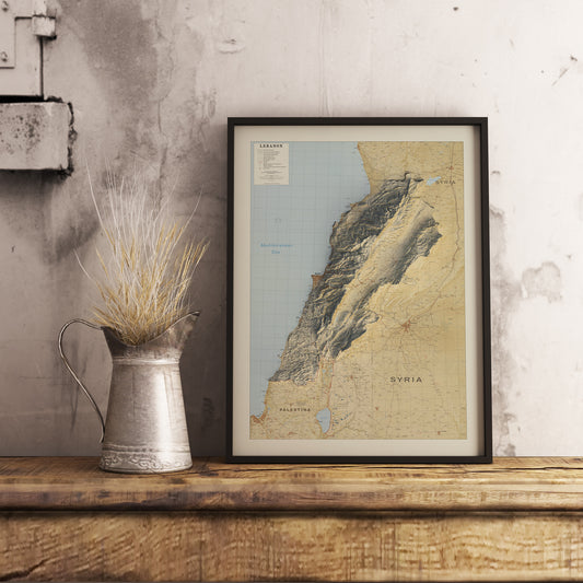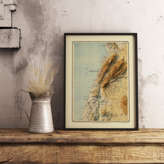Lebanon Shaded Relief Map | Vintage Elevation Map Based on 1931 Original