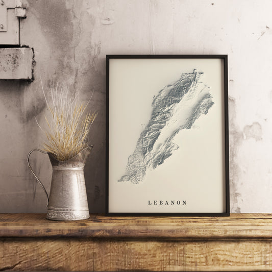 Lebanon Shaded Relief Map | Minimalist Topographic Wall Decor