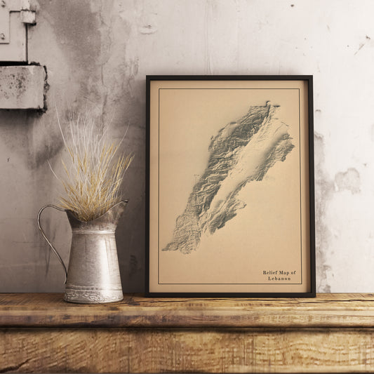 Lebanon Shaded Relief Map | Vintage Elevation Map Based on 1983 Original