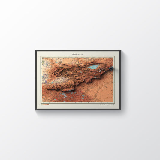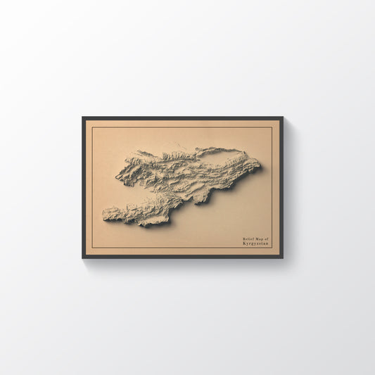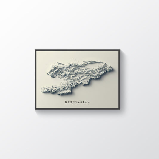 Kyrgyzstan Shaded Relief Map | Minimalist Topographic Wall Decor