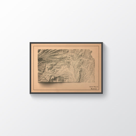 Kansas (USA) Shaded Relief Map | Minimalist Topographic Wall Decor