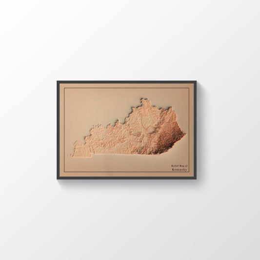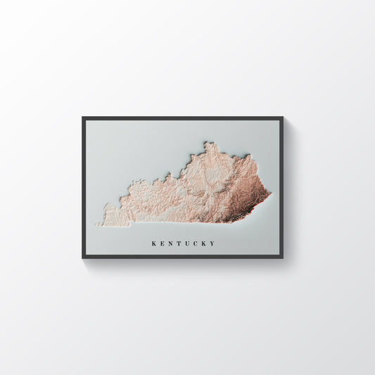 Kentucky (USA) Shaded Relief Map | Minimalist Topographic Wall Decor