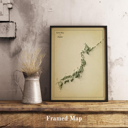 Japan Shaded Relief Map | Vintage Elevation Map Based on 1898 Original