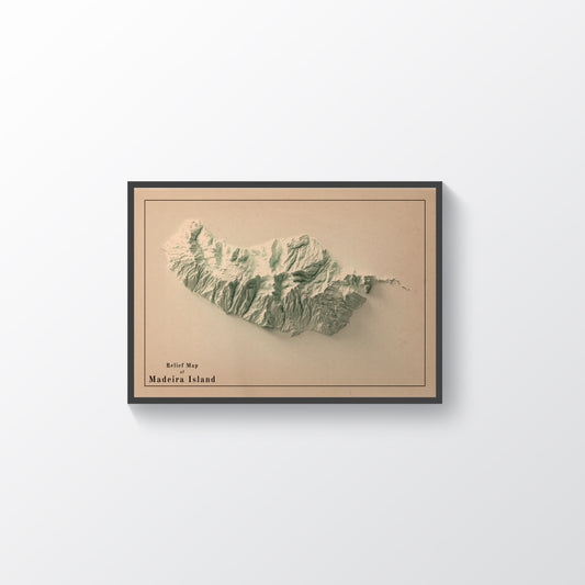 Madeira Island (Portugal) Shaded Relief Map | Minimalist Topographic Wall Decor