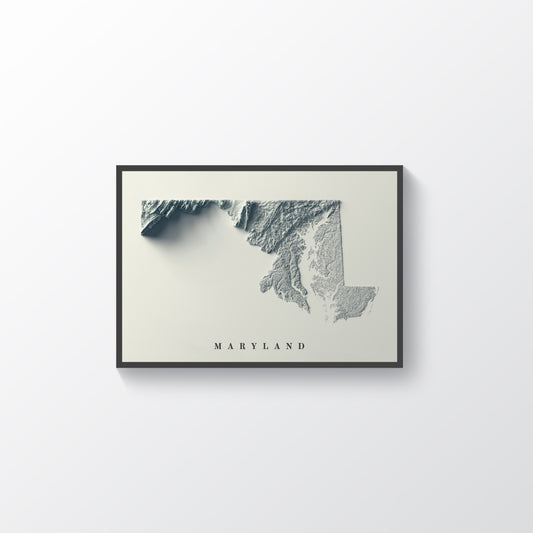 Maryland (USA) Shaded Relief Map | Minimalist Topographic Wall Decor