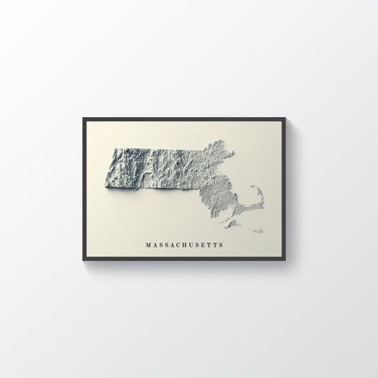 Massachusetts (USA) Shaded Relief Map | Minimalist Topographic Wall Decor