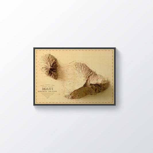 Maui Island (Hawaii) Shaded Relief Map | Vintage Elevation Map Based on 1885 Original