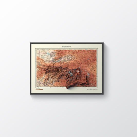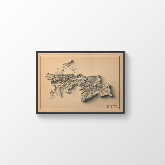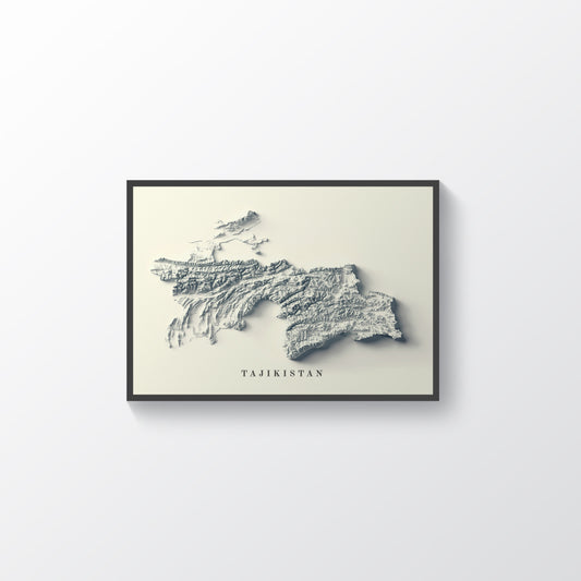 Tajikistan Shaded Relief Map | Minimalist Topographic Wall Decor