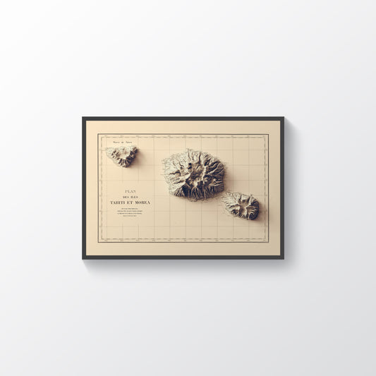 Tahiti Shaded Relief Map | Vintage Elevation Map Based on 1857 Original