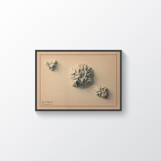 Tahiti Shaded Relief Map | Minimalist Topographic Wall Decor