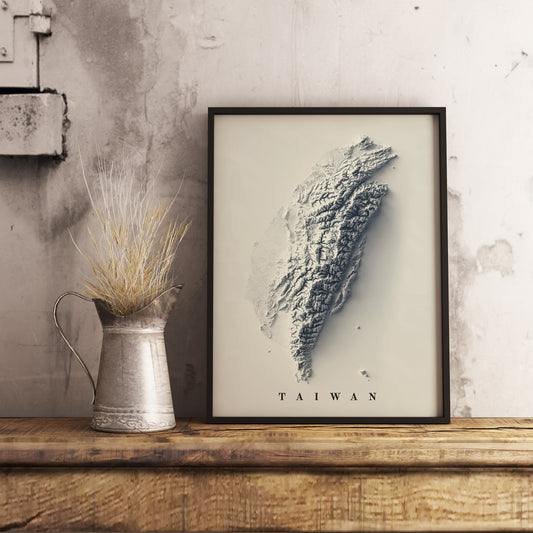 Taiwan Shaded Relief Map | Minimalist Topographic Wall Decor