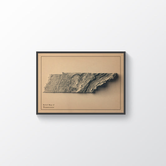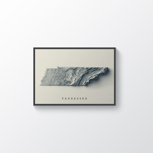 Tennessee (USA) Shaded Relief Map | Minimalist Topographic Wall Decor