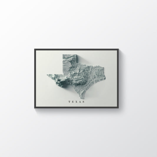 Texas (USA) Shaded Relief Map | Minimalist Topographic Wall Decor