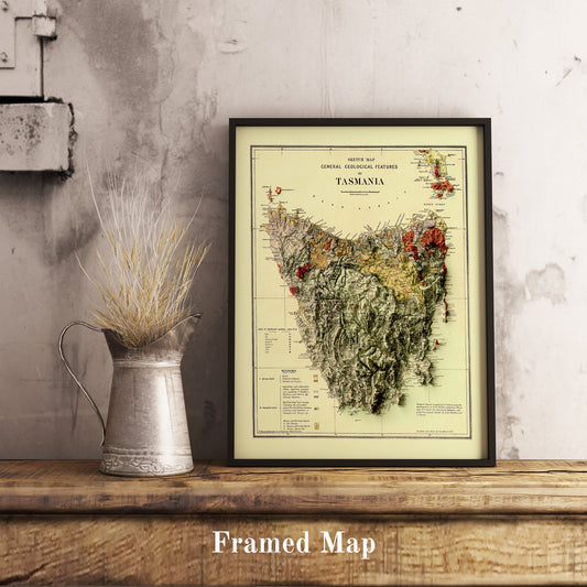 Tasmania (Australia) Shaded Relief Map | Vintage Elevation Map Based on 1884 Original