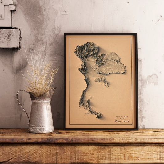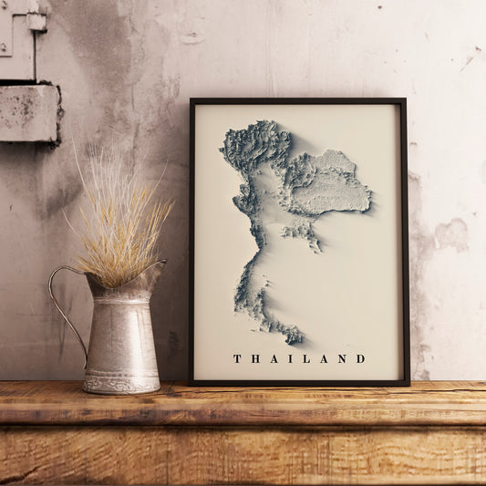 Thailand Shaded Relief Map | Minimalist Topographic Wall Decor