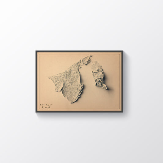 Brunei Shaded Relief Map | Minimalist Topographic Wall Decor