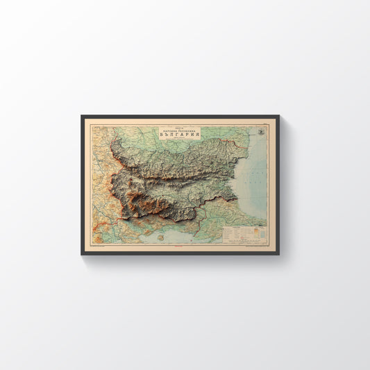 Bulgaria Shaded Relief Map | Vintage Elevation Map Based on 1919 Original