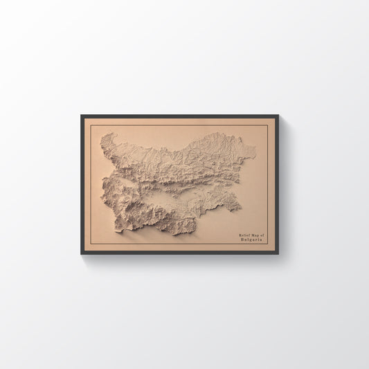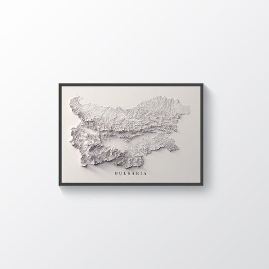 Bulgaria Shaded Relief Map | Minimalist Topographic Wall Decor