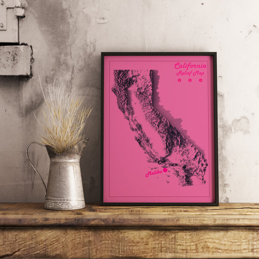 California (Malibu) Shaded Relief Map | Minimalist Topographic Wall Decor