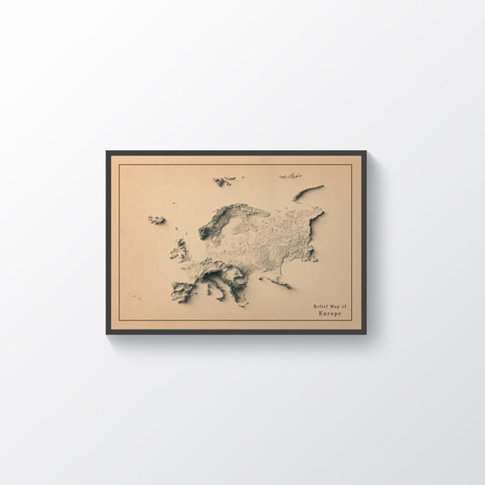 Europe Shaded Relief Map | Minimalist Topographic Wall Decor
