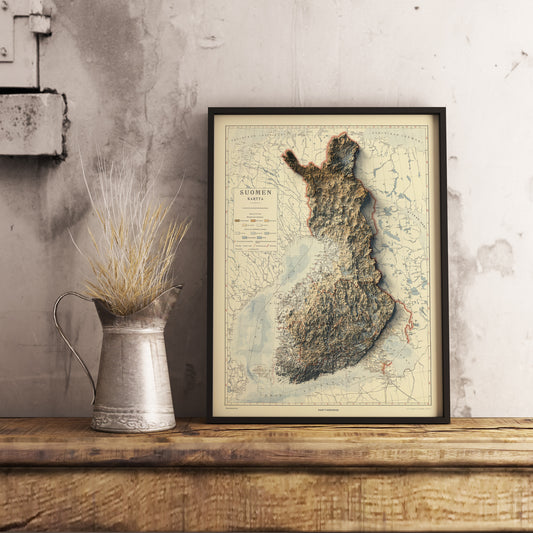Finland Shaded Relief Map | Vintage Elevation Map Based on 1917 Original