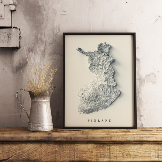 Finland Shaded Relief Map | Minimalist Topographic Wall Decor
