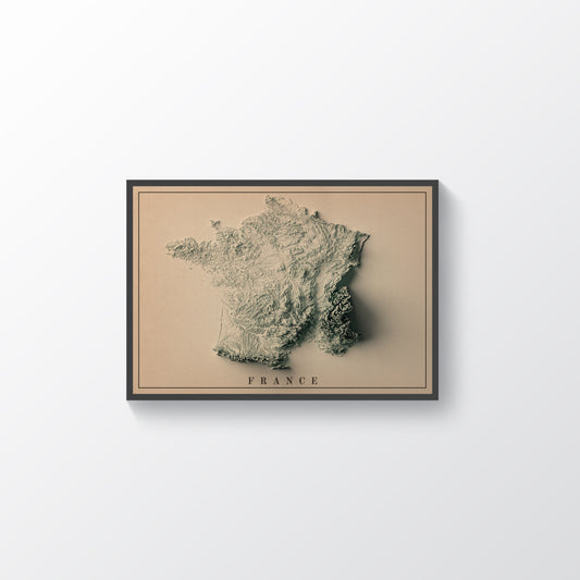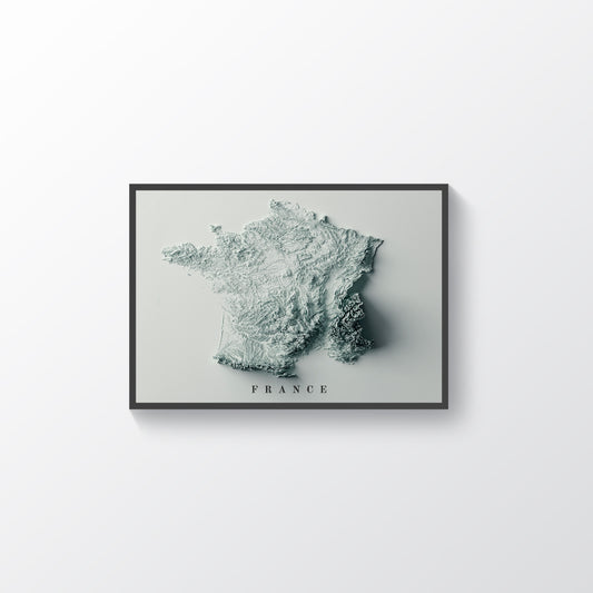 France Shaded Relief Map | Minimalist Topographic Wall Decor
