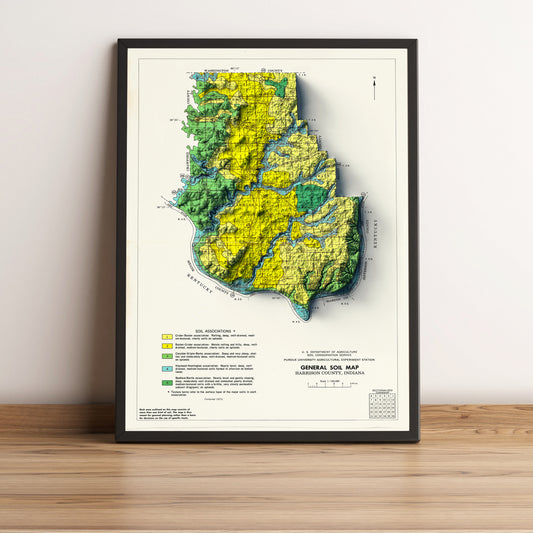 Harrison County (Indiana) Shaded Relief Map | Vintage Elevation Map Based on 19 Original