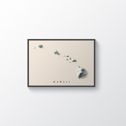 Hawaii Shaded Relief Map | Minimalist Topographic Wall Decor