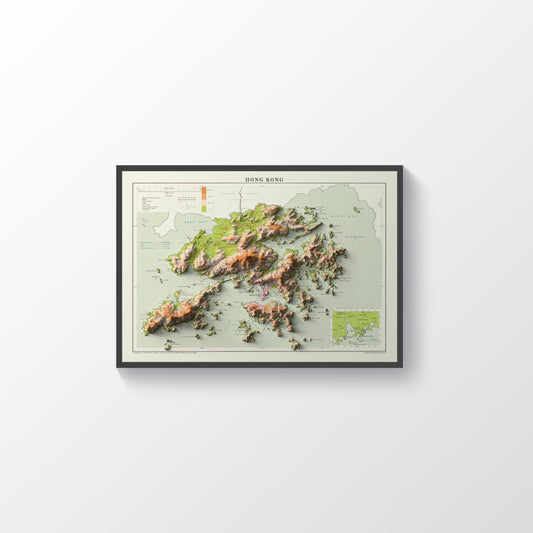 Hong Kong Shaded Relief Map | Minimalist Topographic Wall Decor