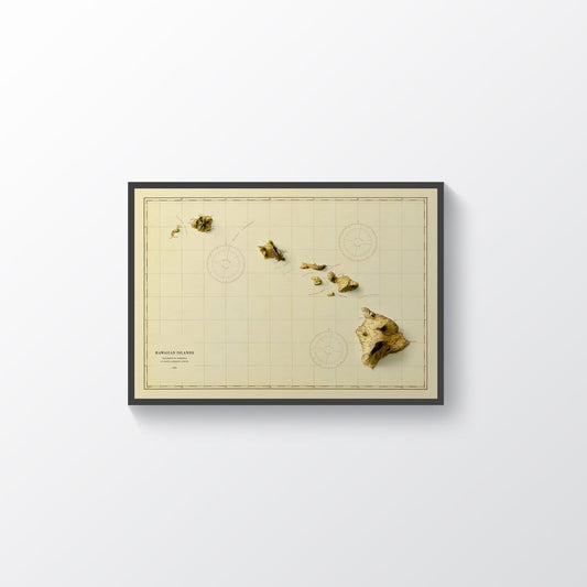 Hawaii Shaded Relief Map | Vintage Elevation Map Based on 1931 Original