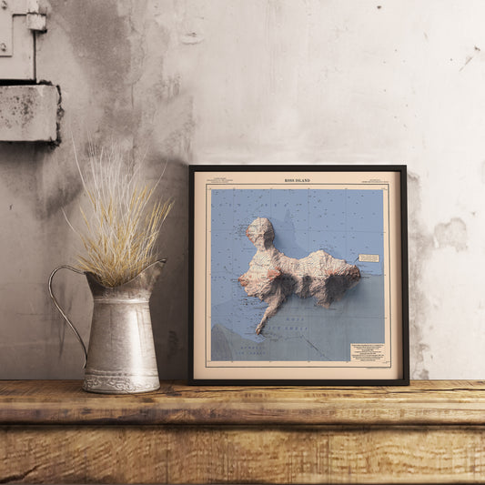 Ross Island (Antarctica) Shaded Relief Map | Vintage Elevation Map Based on 1977 Original