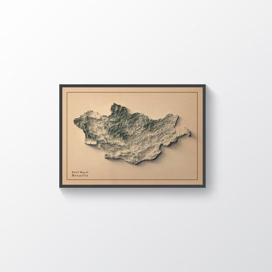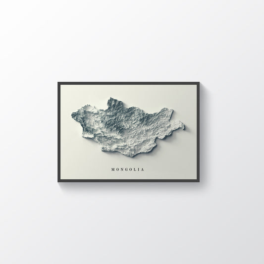 Mongolia Shaded Relief Map | Minimalist Topographic Wall Art