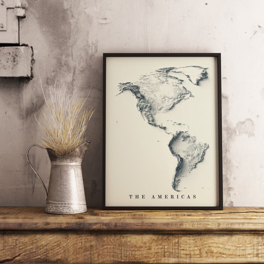 The Americas Shaded Relief Map | Minimalist Topographic Wall Decor