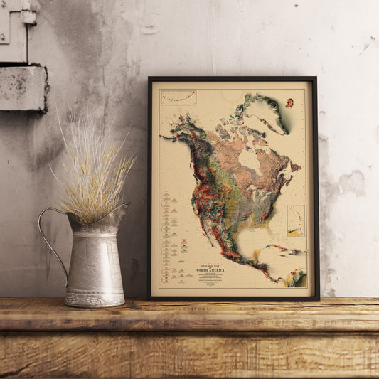 North and Central Americas Shaded Relief Map | Vintage Elevation Map Based on 1911 Original