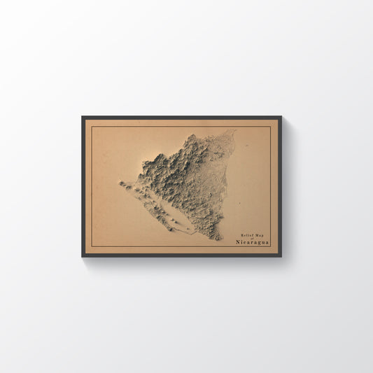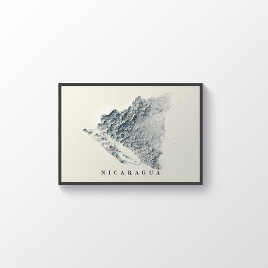 Nicaragua Shaded Relief Map | Minimalist Topographic Wall Decor