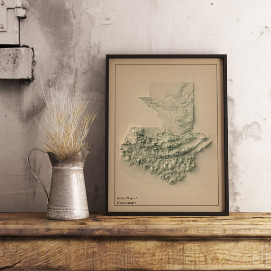 Guatemala Shaded Relief Map | Minimalist Topographic Wall Decor