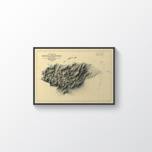Honduras Shaded Relief Map | Vintage Elevation Map Based on 1933 Original