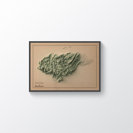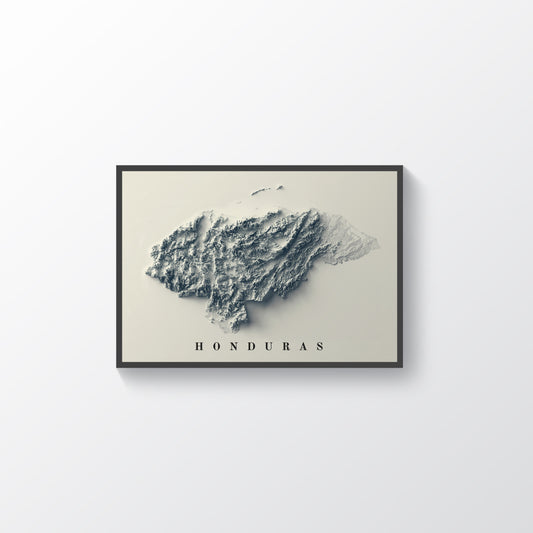 Honduras Shaded Relief Map | Minimalist Topographic Wall Decor