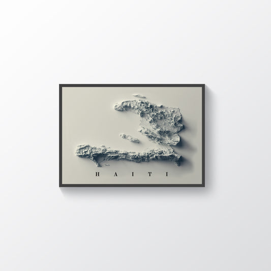 Haiti Shaded Relief Map | Minimalist Topographic Wall Decor