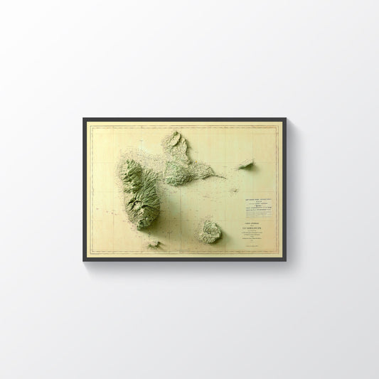 Guadeloupe (France) Shaded Relief Map | Vintage Elevation Map Based on 1879 Original
