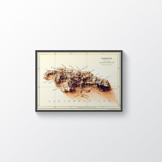 Jamaica Shaded Relief Map | Vintage Elevation Map Based on 1888 Original