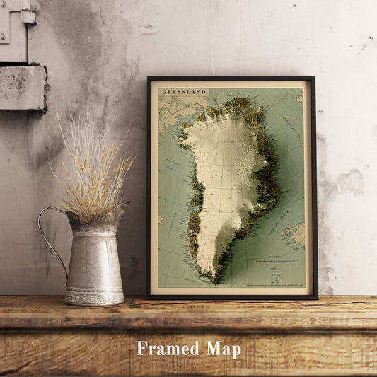 Greenland Shaded Relief Map | Vintage Elevation Map Based on 1963 Original